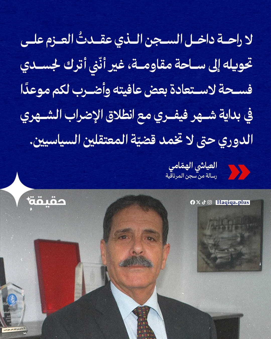 العياشي الهمّامي يستجيب لرسالة أحمد صواب وينهي اضرابه عن الطّعام..